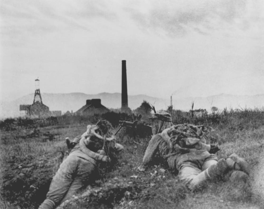 百團大戰(zhàn)第一階段以破襲正太鐵路為重點,陽泉位于其“咽喉”部位,成為第一階段的主戰(zhàn)場。這是在山西獅腦山血戰(zhàn)中的我軍機槍陣地。