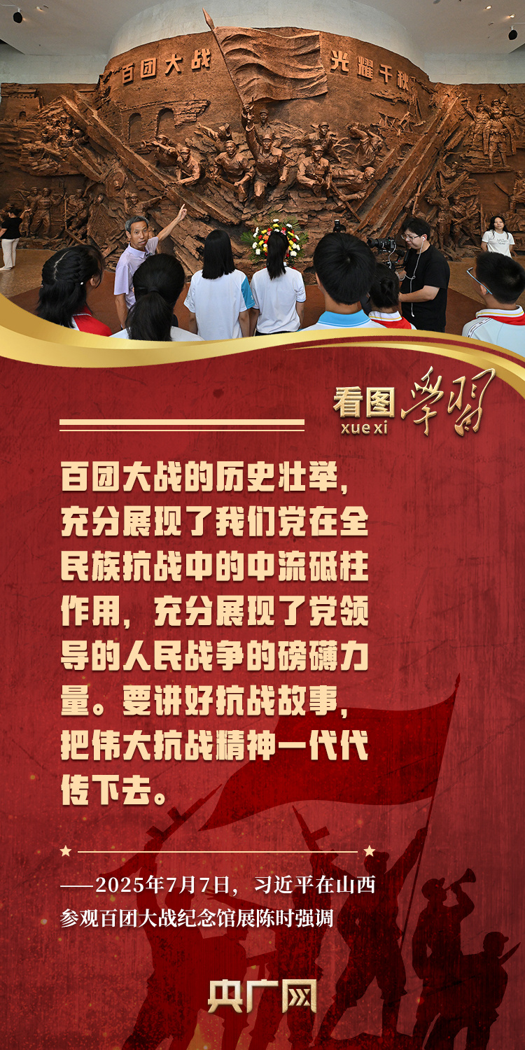“要講好抗戰(zhàn)故事,把偉大抗戰(zhàn)精神一代代傳下去。”黨的十八大以來,習(xí)近平總書記在地方考察調(diào)研時(shí),多次到具有重大歷史意義的革命圣地、紅色舊址、歷史紀(jì)念場(chǎng)所等緬懷革命先烈,重溫崢嶸歲月,深刻闡釋歷史啟迪。今年是中國(guó)人民抗日戰(zhàn)爭(zhēng)暨世界反法西斯戰(zhàn)爭(zhēng)勝利80周年,《看圖學(xué)習(xí)》邀您一起跟隨總書記的腳步,共同緬懷抗戰(zhàn)先烈的豐功偉績(jī),繼承和弘揚(yáng)偉大抗戰(zhàn)精神,為強(qiáng)國(guó)建設(shè)、民族復(fù)興作出我們的新貢獻(xiàn)。