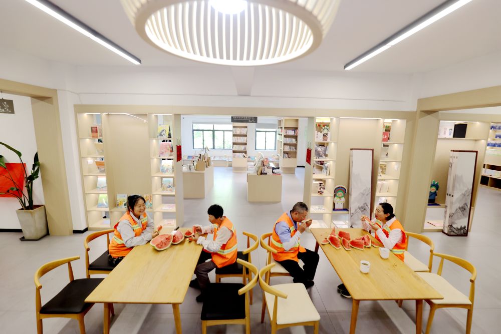 2025年6月19日,村民在浙江省海寧市鹽官鎮(zhèn)桃園村紅“芯”共富工坊內工作。該共富工坊針對有靈活就業(yè)需求的低收入村民,采用“靈活就業(yè)+固定用工”彈性用工方式,促進群眾就業(yè)增收。
