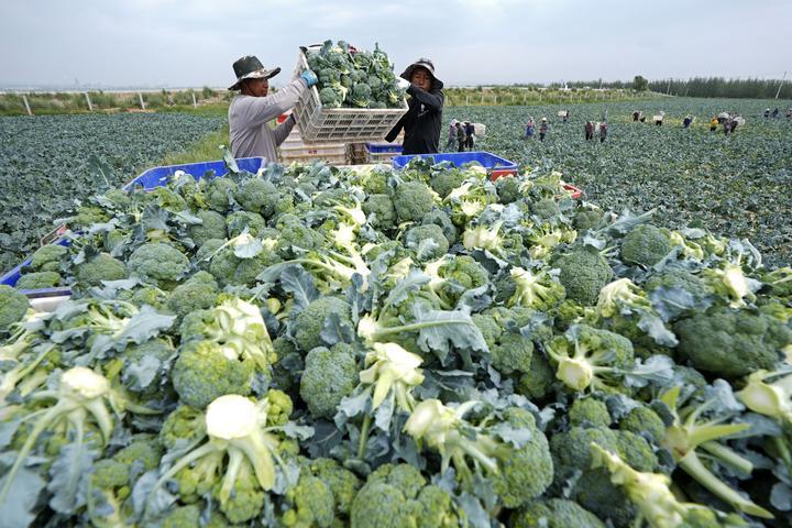 2025年7月18日,工作人員在寧夏固原市原州區(qū)彭堡鎮(zhèn)萬畝冷涼蔬菜基地運(yùn)輸西蘭花。固原依托高海拔、氣候冷涼等“冷資源”優(yōu)勢(shì),大力發(fā)展冷涼蔬菜產(chǎn)業(yè),著力打造“六盤山冷涼蔬菜”區(qū)域公用品牌。目前已建成冷涼蔬菜規(guī)?;N植基地130余個(gè),種植面積穩(wěn)定在50萬畝,年產(chǎn)鮮菜200萬噸以上?!傲P山冷涼蔬菜”這張打造的“綠色名片”,已成為當(dāng)?shù)剜l(xiāng)村振興發(fā)展之路上的“熱產(chǎn)業(yè)”
