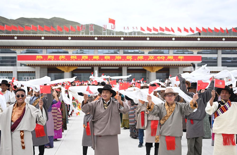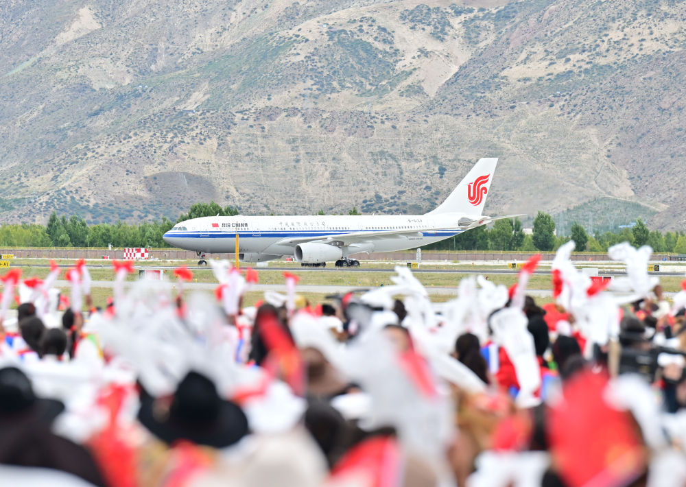 中共中央總書記、國家主席、中央軍委主席習近平率中央代表團20日中午乘專機抵達拉薩,出席西藏自治區(qū)成立60周年慶?;顒?。習近平等在機場和拉薩市區(qū)受到西藏各族群眾的熱烈歡迎。
