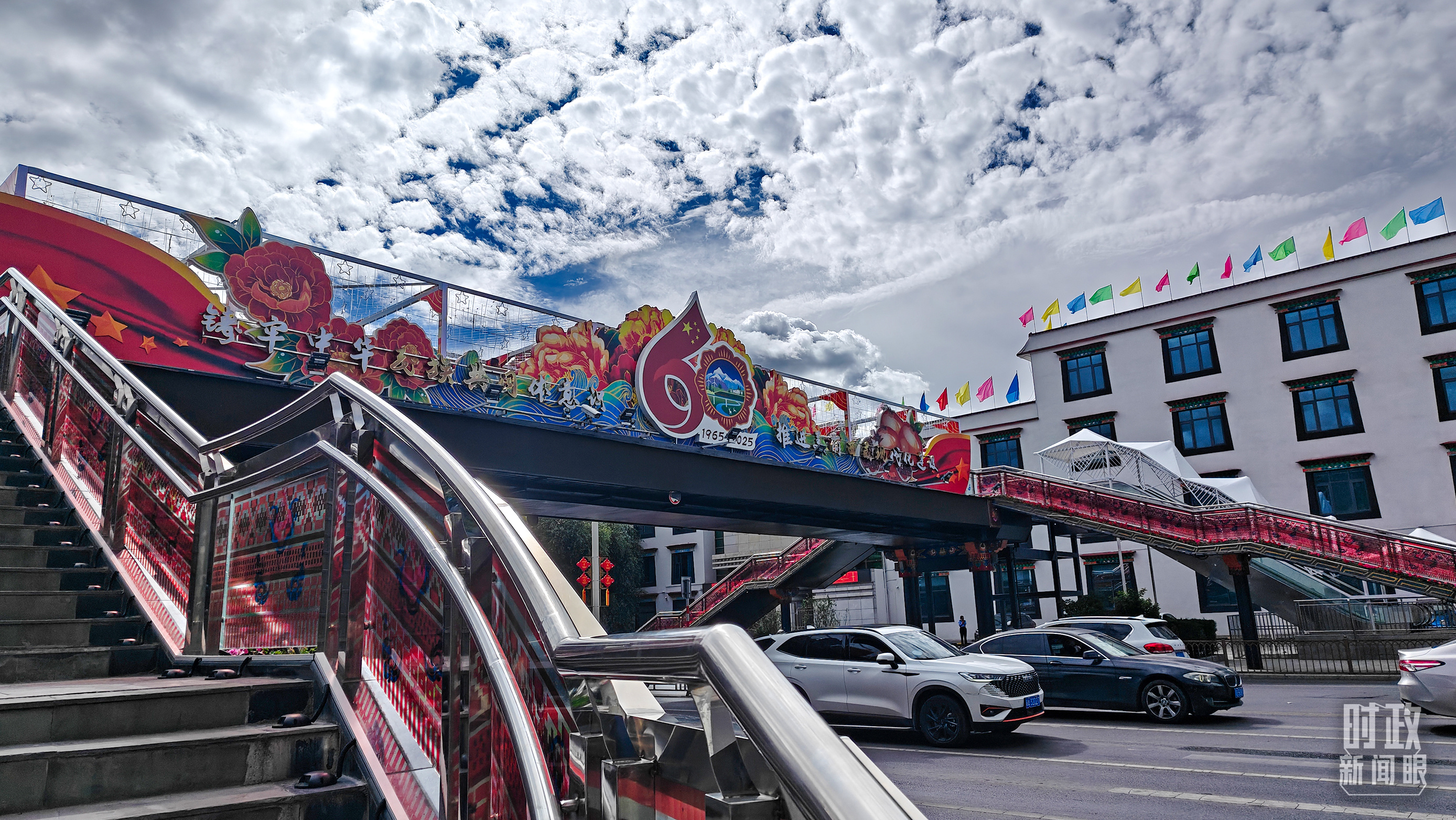 西藏自治區(qū)成立60周年標識。(總臺央視記者韓銳拍攝)