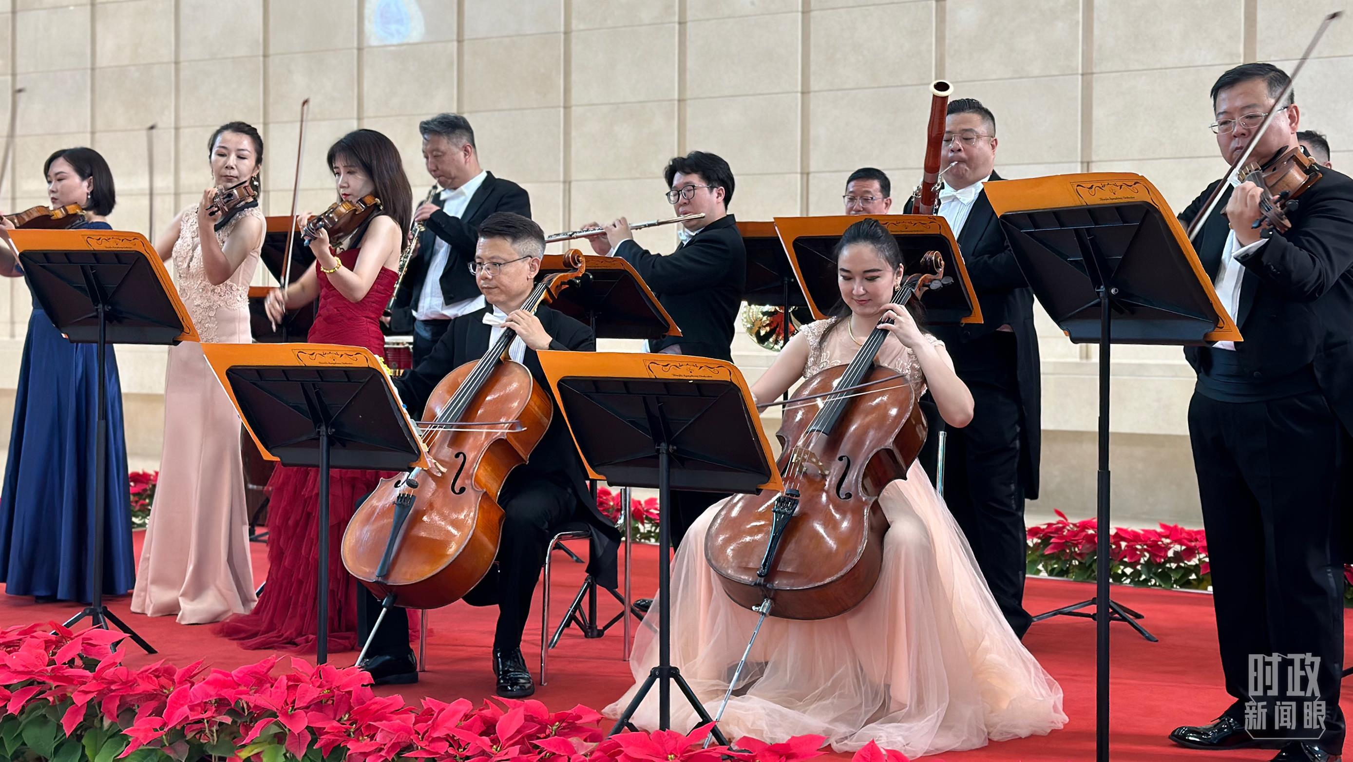 天津交響樂(lè)團(tuán)演奏與會(huì)各國(guó)知名樂(lè)曲。(總臺(tái)央視記者盧心雨拍攝)