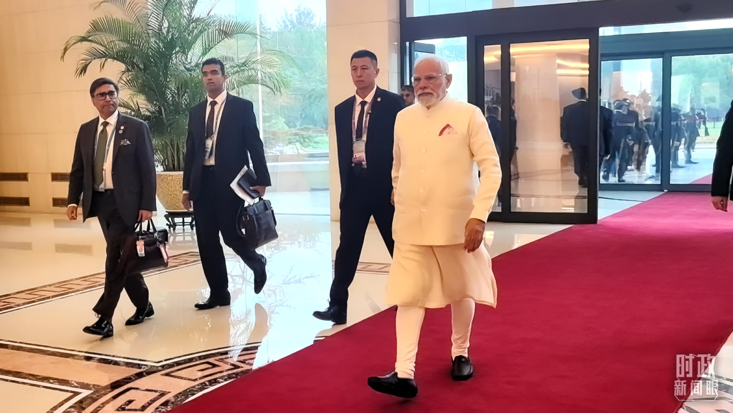 印度總理莫迪步入會(huì)見(jiàn)廳。(總臺(tái)央視記者范凱拍攝)