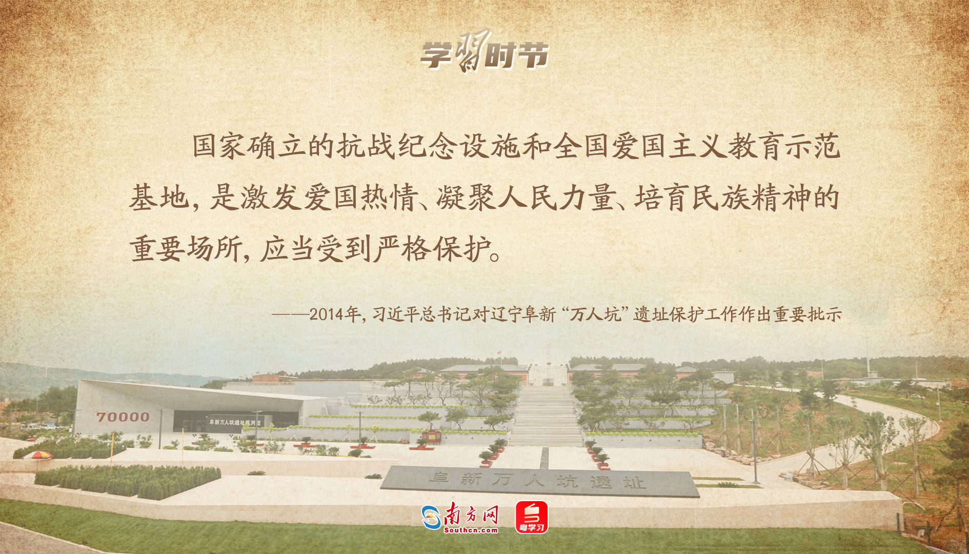 “國(guó)家確立的抗戰(zhàn)紀(jì)念設(shè)施和全國(guó)愛(ài)國(guó)主義教育示范基地,是激發(fā)愛(ài)國(guó)熱情、凝聚人民力量、培育民族精神的重要場(chǎng)所,應(yīng)當(dāng)受到嚴(yán)格保護(hù)?!?/p>