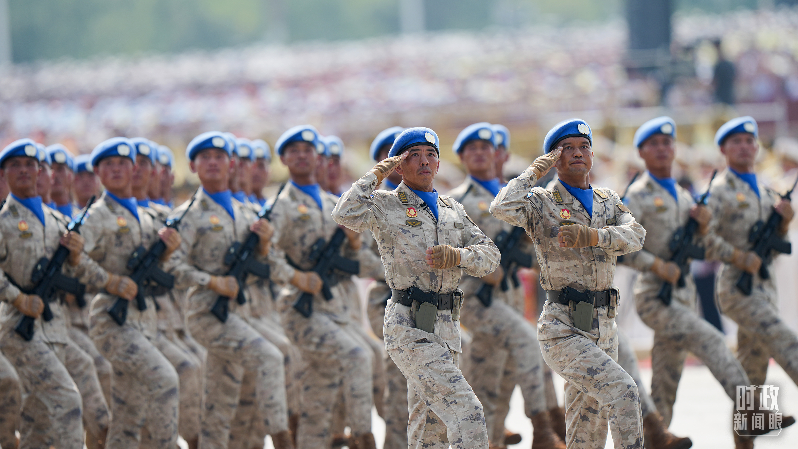 閱兵式上,維和部隊方隊闊步走來。今年是中國軍隊參加聯(lián)合國維和行動35周年,累計派遣超過5萬名維和官兵,中國是聯(lián)合國安理會常任理事國中派出維和人員最多的國家?!爸袊{(lán)盔”不懼艱險、不辱使命,以熱血鍛鑄和平盾牌,用行動譜寫大國擔(dān)當(dāng),已經(jīng)成為守護(hù)世界和平安寧的關(guān)鍵穩(wěn)定力量。