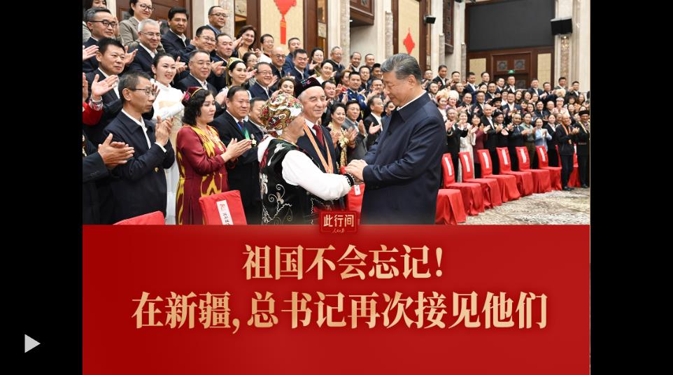 習近平23日下午接見新疆各族各界代表。代表中,我們發(fā)現(xiàn)了這4位,他們是“七一勛章”獲得者魏德友、“七一勛章”獲得者買買提江·吾買爾、“人民楷模”布茹瑪汗·毛勒朵、“人民衛(wèi)士”巴依卡·凱力迪別克。習近平總書記微笑著同他們親切握手。