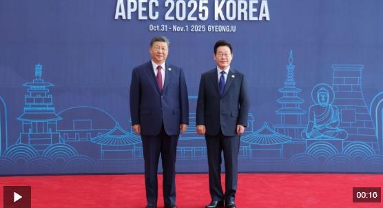 習(xí)近平主席抵達(dá)時(shí),韓國總統(tǒng)李在明熱情迎接。兩國元首握手、合影,留下珍貴的“APEC瞬間”。隨后,兩位領(lǐng)導(dǎo)人微笑交談,共同步入會場。
