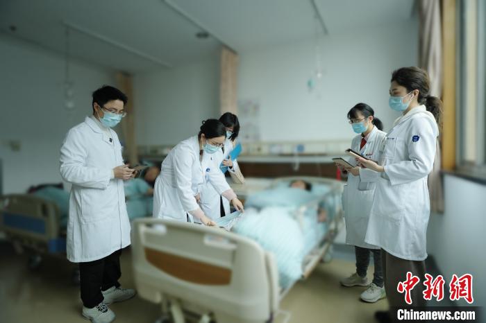 樓敏團(tuán)隊(duì)對(duì)腦?;颊哌M(jìn)行查房。(浙大二院供圖)