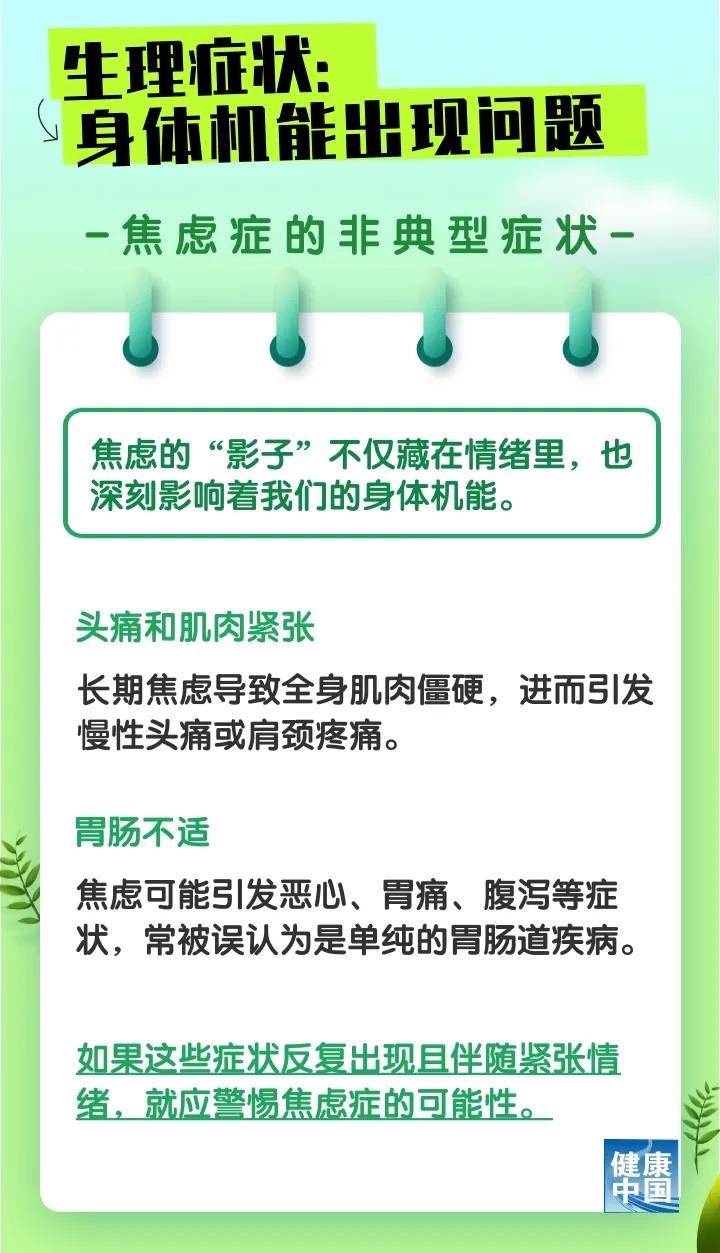 焦慮癥的非典型癥狀涵蓋生理、認(rèn)知和行為多個方面,很多患者容易忽視,進(jìn)而延誤治療時機。