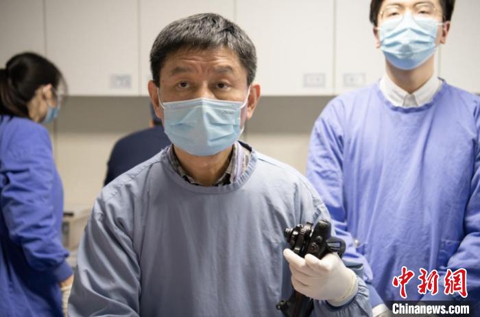 圖為呂賓在為患者進(jìn)行胃鏡下剝離手術(shù)。(浙江省中醫(yī)院供圖)
