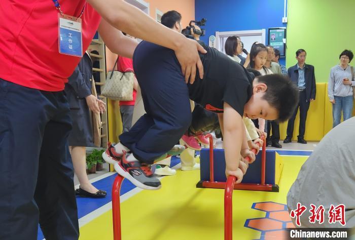 在候診區(qū),來自山東省運(yùn)動與健康產(chǎn)業(yè)協(xié)同創(chuàng)新中心的關(guān)關(guān)教練,正在用智能體測儀為孩子們做體格檢查?!伴T診試點(diǎn)啟動后,我們將定期安排教練到這里做運(yùn)動指導(dǎo),為出現(xiàn)XO型腿、脊柱側(cè)彎等身體問題以及存在心理障礙的孩子,有針對性地提供訓(xùn)練項目?!标P(guān)關(guān)說。