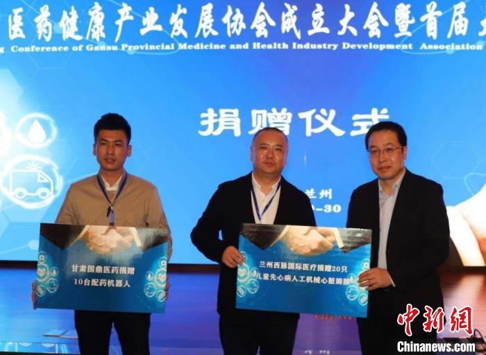 協(xié)會(huì)組織企業(yè)向甘肅未脫貧的8個(gè)縣和甘南藏族自治州、臨夏回族自治州捐贈(zèng)了配藥機(jī)器人及兒童先心病人工機(jī)械心臟瓣膜?!∈缝o靜 攝