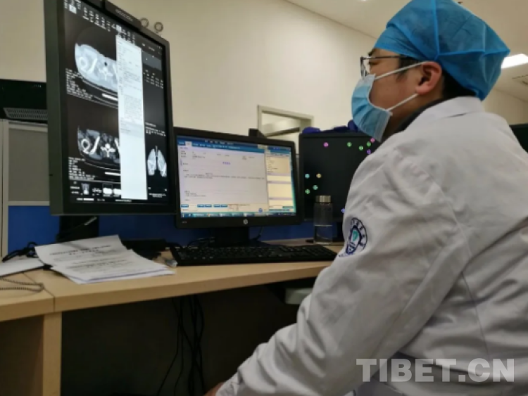 圖為影像科醫(yī)生正在使用新冠肺炎影像輔助診斷平臺