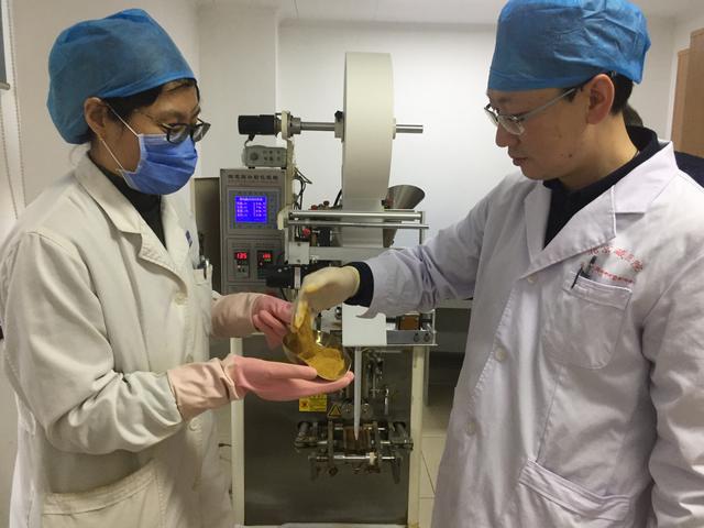 北京藏醫(yī)院工作人員正在包裝九味防瘟散。(受訪者供圖)