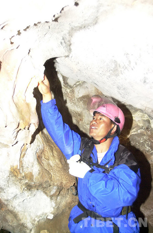 這是西藏藏醫(yī)學(xué)院教師格桑頓珠(前右)在班戈縣保吉鄉(xiāng)娘日貢溶洞考察(唐召明2001年攝)