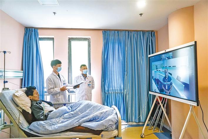 圖為察隅、深圳兩地醫(yī)生在病房開展遠(yuǎn)程會(huì)診。記者 益西加措 攝