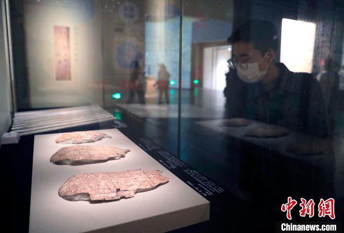 觀眾在觀看展出的殷墟龜甲?!⊥趵?攝