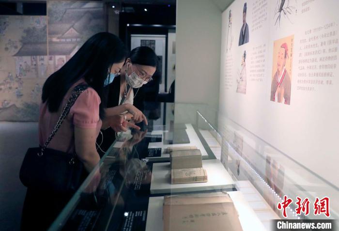 觀眾在觀看展出的中國(guó)傳統(tǒng)醫(yī)學(xué)文獻(xiàn)?!⊥趵?攝