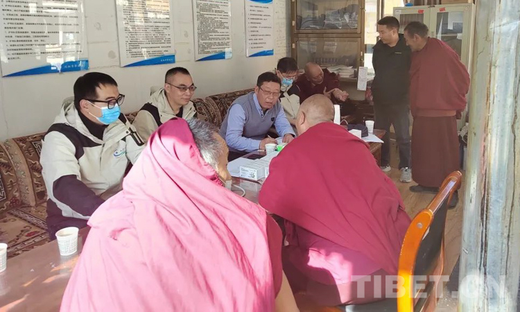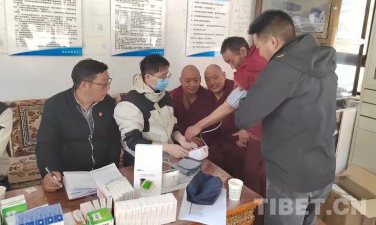現(xiàn)場志愿服務隊員們?yōu)樯娐犜\、量血壓、開處方、提建議,并幫助他們預約檢查,聯(lián)系醫(yī)保局詳細解答醫(yī)保報銷問題等。期間,隊員們還教會了每一位僧人使用電子血壓計監(jiān)測血壓,并向僧眾征集就診看病、醫(yī)療改革建議12條。義診結束時,僧眾向志愿服務隊員們獻上哈達以示感謝。