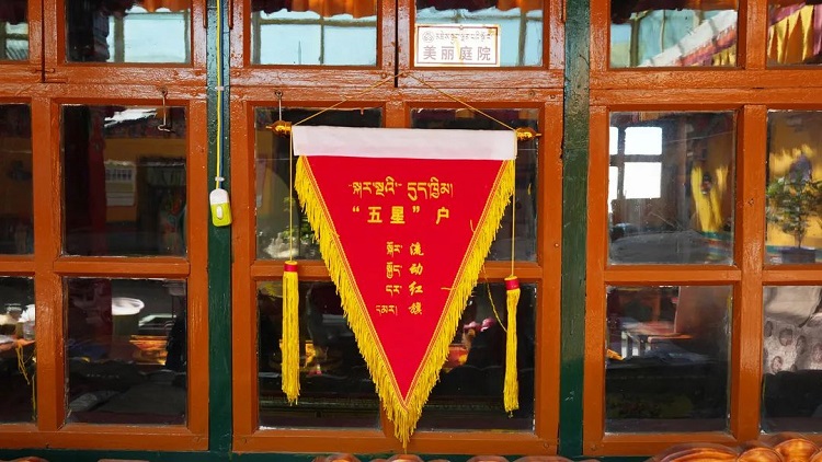 中國(guó)西藏網(wǎng)訊 在西藏自治區(qū)日喀則市桑珠孜區(qū)聯(lián)鄉(xiāng)楚西村的米普家中,一面“五星”戶的流動(dòng)紅旗格外亮眼。