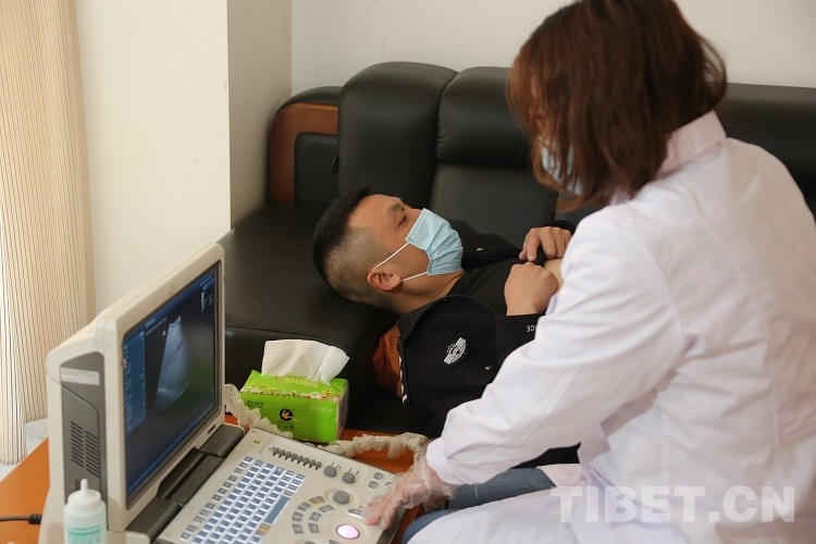 圖為醫(yī)生為拉薩邊檢站民警體檢 攝影:王佳豪