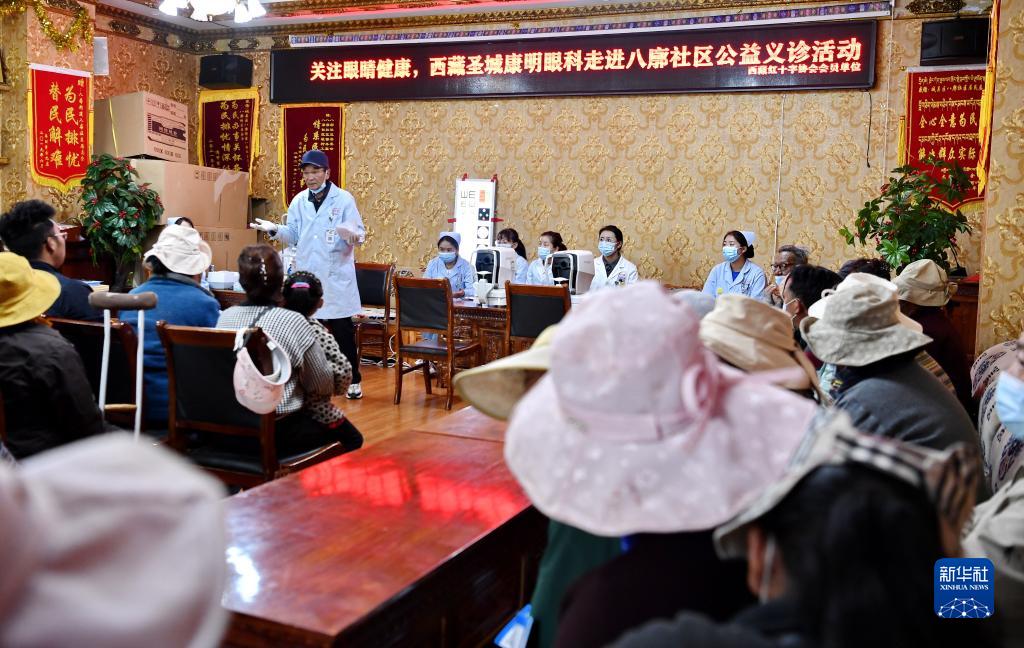 5月9日,醫(yī)務(wù)人員為八廓社區(qū)的居民開(kāi)展眼科基礎(chǔ)知識(shí)講座。新華社記者 張汝鋒 攝