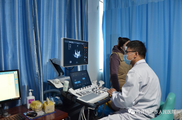 圖為林芝市醫(yī)療援藏專(zhuān)家正在為當(dāng)?shù)厝罕娺M(jìn)行先心病篩查