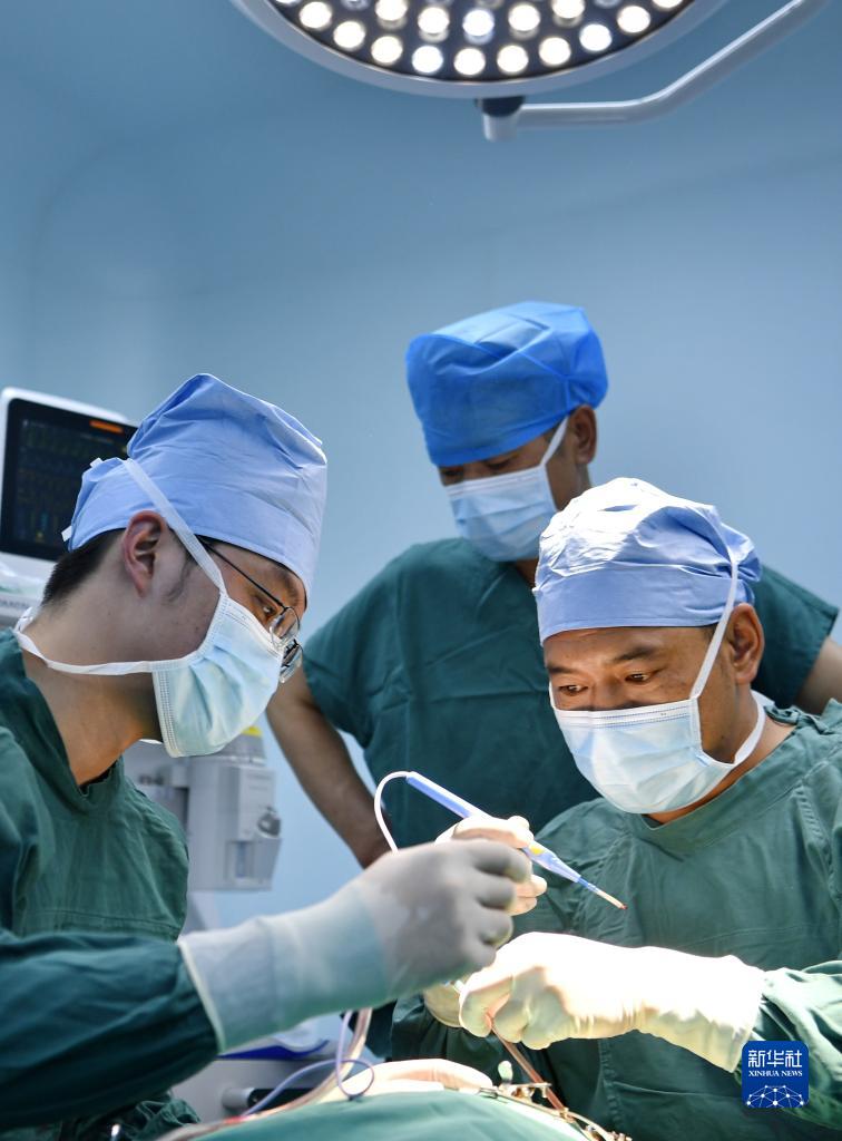 7月31日,中國(guó)醫(yī)學(xué)科學(xué)院整形外科醫(yī)院醫(yī)生王克明(右)在阿里地區(qū)人民醫(yī)院為一名唇腭裂患者做修復(fù)手術(shù)。新華社記者 張汝鋒 攝