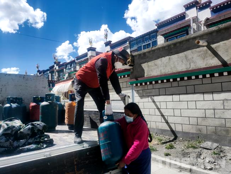 志愿服務(wù)隊(duì)志愿者們通過(guò)電話、微信群等方式排查,詢問(wèn)并收集群眾基本生活物資(面粉、大米、煤氣罐加氣、蔬菜)需求,安排專人和車子到洛扎縣城進(jìn)行代購(gòu),并以最快的速度把物資送到群眾家門口?! ?/p>