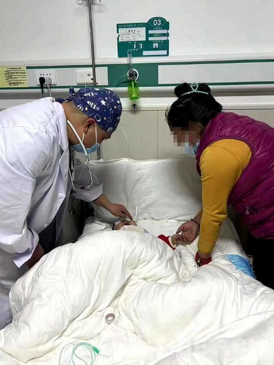 手術(shù)順利結(jié)束,看著醫(yī)護人員把才巴央措從手術(shù)室推出來,母親卓巴雙手合十并不停對著醫(yī)護人員說 “噶真切”“噶真切”,醫(yī)護人員也面帶欣慰的微笑,用一兩句簡單的藏語回應(yīng)著卓巴,看著病床上熟睡的才巴央措,卓巴輕撫孩子臉頰哽咽落淚。