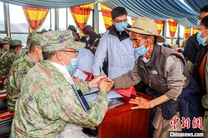 “多年的疾病,今天終于接受了一次系統(tǒng)的檢查和治療,感謝‘金珠瑪米門巴’(解放軍醫(yī)生)?!贝迕裎骼@為外科醫(yī)生王勝獻(xiàn)上潔白的哈達(dá),表達(dá)她的感恩之心,并緊握醫(yī)生的手久久不愿放開(kāi)。