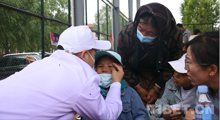 年過(guò)花甲的嘎瑪央吉帶著上小學(xué)的孫女走進(jìn)義診區(qū),她是拉薩市尼木縣續(xù)邁鄉(xiāng)安崗村的村民,也是7月8日當(dāng)天義診活動(dòng)中患者之一?!拔一加嘘P(guān)節(jié)炎和骨質(zhì)增生,腸胃也不太好,而我今天主要來(lái)檢查我孫女的眼睛,她常流眼淚,總是跟我們說(shuō)眼睛不舒服,我們一家子人都很擔(dān)心。聽(tīng)說(shuō)今天來(lái)鄉(xiāng)里義診的醫(yī)生都是來(lái)自全國(guó)各地的知名專(zhuān)家,特地來(lái)看看。”老人向醫(yī)生及鄉(xiāng)里的翻譯人員講述自己及孫女的狀況。