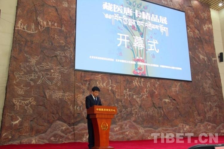 中國藏學研究中心北京藏醫(yī)院院長仲格嘉在開幕式致辭中介紹,起源和根植于中華民族的藏醫(yī)藥,是我國中醫(yī)藥學寶庫中的一顆璀璨明珠。藏醫(yī)藥迄今已有3800多年的發(fā)展歷史,在藏醫(yī)學史上形成了別出心裁的藏醫(yī)唐卡。藏醫(yī)唐卡以浩瀚畫卷,形象生動、系統(tǒng)地描繪了藏醫(yī)藥學的體系框架、基礎(chǔ)理論、臨床實踐技法,以及藏醫(yī)史、醫(yī)德醫(yī)風、養(yǎng)生保健等內(nèi)容。除了藏醫(yī)教學的實用價值外,藏醫(yī)唐卡還有很高的民族學、歷史學、宗教學及美學價值,其卷幅之多、內(nèi)容之廣博、構(gòu)思之巧妙、畫工之精湛,堪稱學習藏醫(yī)藥學的百科全書。