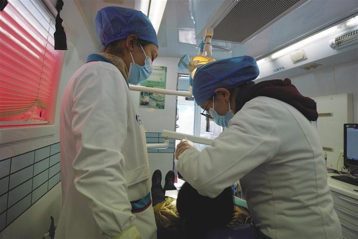 上午9點半,義診車輛到達沖賽康社區(qū)居委會附近,居民們有序排起了長隊,等待接受檢查?,F(xiàn)場,醫(yī)務人員仔細為每一位居民檢查口腔,耐心細致地講解口腔保健、牙病預防等方面的口腔知識,并有針對性地為居民提出治療建議。