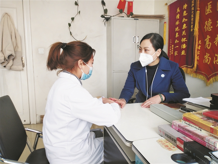 圖為肖霞(右)在詢問醫(yī)生助理的工作情況。 記者 莫瑞英攝