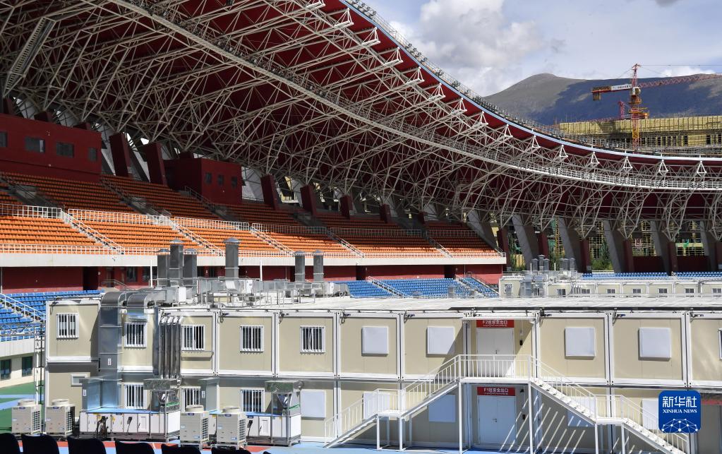 位于拉薩市柳梧新區(qū)拉薩市群眾文化體育中心內(nèi)的方艙醫(yī)院(8月9日攝)。新華社記者 晉美多吉 攝