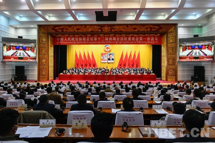 圖為政協(xié)第十二屆西藏自治區(qū)委員會第一次會議閉幕會現(xiàn)場 攝影:次旦拉姆