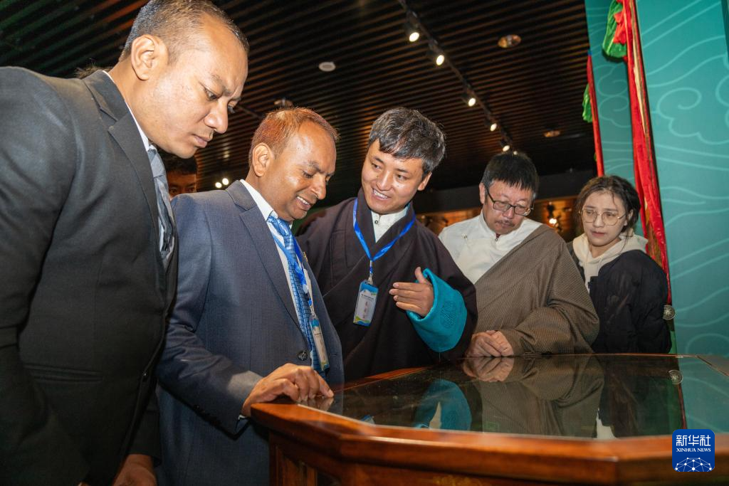 首屆《四部醫(yī)典》國(guó)際學(xué)術(shù)交流會(huì)參會(huì)嘉賓參觀《四部醫(yī)典》專(zhuān)題展覽(10月18日攝)。新華社記者 旦增尼瑪曲珠 攝