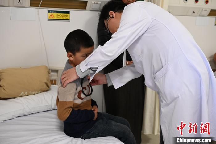 圖為北京協(xié)和醫(yī)院心外科副主任、副主任醫(yī)師張超紀(jì)為患兒尼瑪(化名)初步檢查身體情況。 中新社記者 徐雪瑩 攝