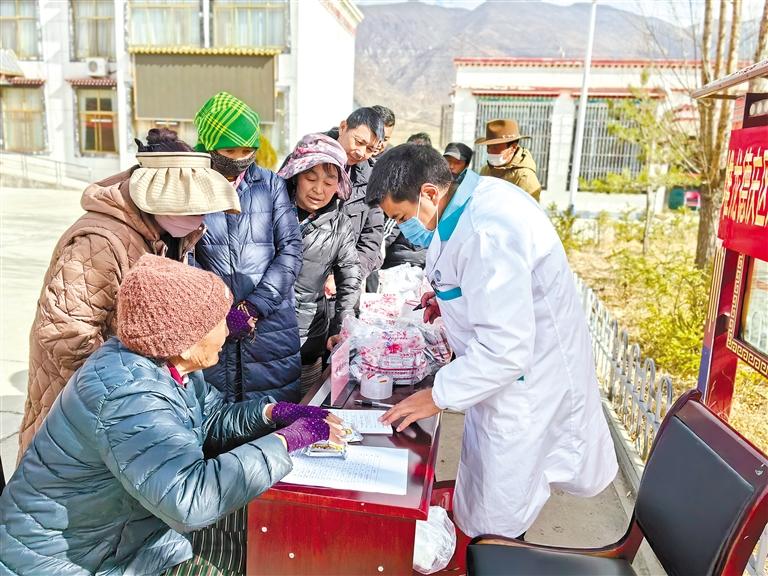 近日,拉薩市堆龍德慶區(qū)婦聯(lián)在包村點古榮鎮(zhèn)加入村開展送醫(yī)送藥送健康活動,邀請西藏雄巴拉曲神水藏藥有限公司醫(yī)務(wù)人員為群眾進行義診。 圖為義診現(xiàn)場。記者 拉巴桑姆 攝