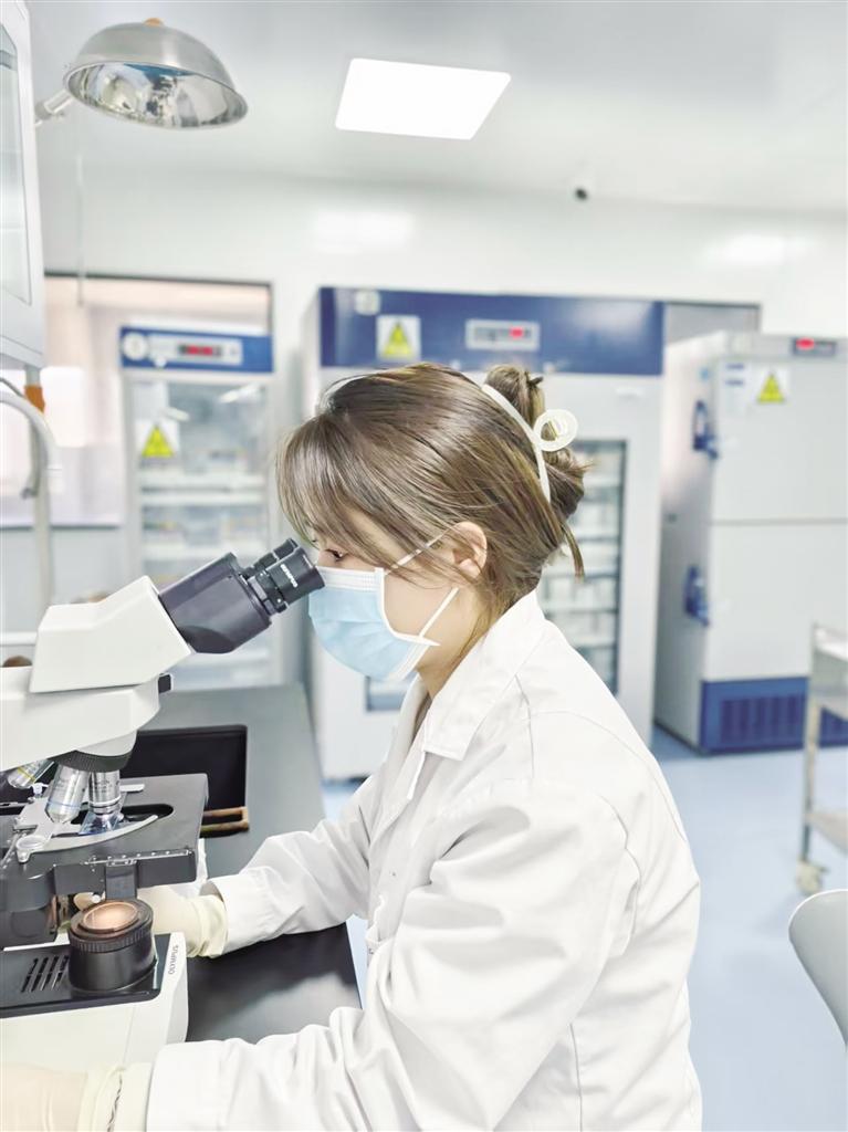 圖為次仁曲珍在顯微鏡下閱片。 圖由黃君提供