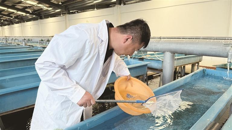 基因組信息更直接指導(dǎo)了全人工繁育體系的優(yōu)化?!拔覀儼l(fā)現(xiàn)黑斑原鮡的性腺發(fā)育與光照周期、水溫存在強(qiáng)關(guān)聯(lián)?!蓖跞f良說,團(tuán)隊(duì)還通過轉(zhuǎn)錄組測(cè)序揭示了苗種拒食行為的分子機(jī)制——其腸道缺乏消化植物蛋白的基因,這促使科研人員開發(fā)出以小型水生動(dòng)物為主的專用飼料,成功解決了開口餌料難題。
