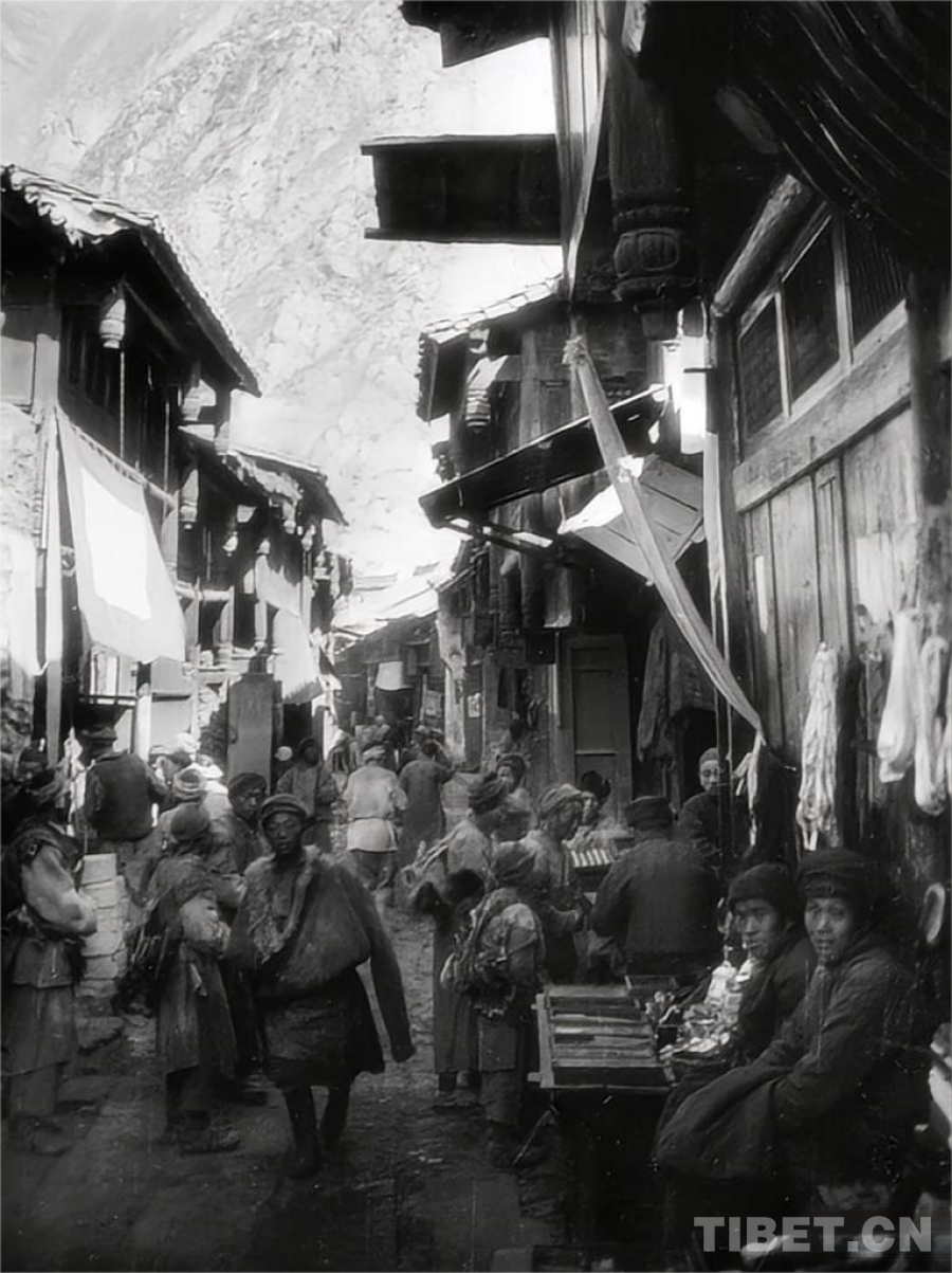 百姓生活中的文化交融,可從當(dāng)?shù)厝藦氖碌穆殬I(yè)和社交活動體現(xiàn)出來。1890年,有外國人記敘說,“不同種族的人混雜在一起,很奇特,把街道擠得滿滿的”。他又寫道:城里漢人一般經(jīng)商和開店,藏人大多被商隊(duì)雇傭。他住宿的鍋莊的女主人是藏人?!板伹f都是女人當(dāng)家,為什么她們能當(dāng)家?她們能說會道,既懂漢語又懂藏語,她就有這個(gè)本事。在她的家里,招待漢族的方式是一套,比如你吃印度的紙煙,過去漢族地方的黃煙,水煙袋,她就請你吃這個(gè),你是漢族的,然后這個(gè)泡茶。按照漢族人的方式。但藏族的商人去了以后怎么辦呢,那就是—鼻煙,酥油茶、牛肉,她這個(gè)禮節(jié)都體現(xiàn)了文化交流?!彼阱伹f還見到藏漢婦女的一次聚會:“旅店里有一場女性宴會,我從未見過這種場面。大約20個(gè)漢藏女子,均著最好的服飾到來。漢族女子身穿絲綢,頭發(fā)抹油,雙頰撲粉;藏族女子身穿深色毛織外衣和褲子,高靴至膝。他們渾身戴著金銀珠寶,聚會約在下午2點(diǎn)開始,他們玩到6點(diǎn)才散去”。