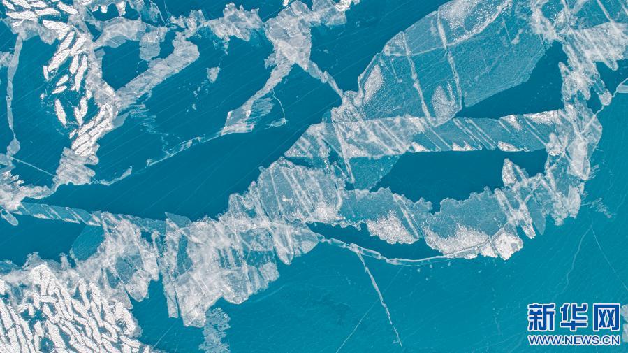 湖面結(jié)冰的納木錯(cuò)(1月29日攝,無人機(jī)照片)。新華社記者 晉美多吉 攝