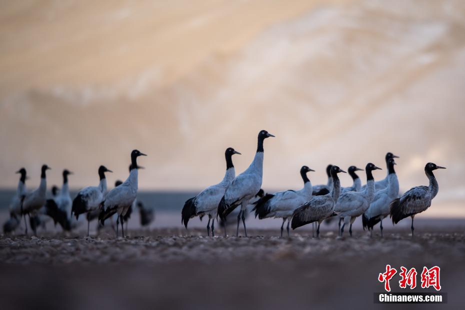 2月17日,西藏拉薩市林周縣黑頸鶴保護(hù)區(qū)內(nèi),黑頸鶴翩躚起舞、分外美麗。中新社記者 何蓬磊 攝