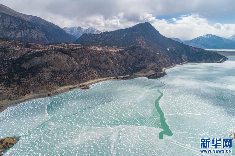 這是2月16日拍攝的然烏湖(無人機照片)。新華社記者 孫非 攝