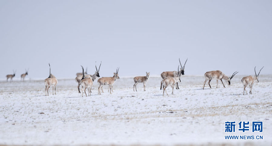 近日,可可西里迎來(lái)降雪,大量藏羚羊匯聚在可可西里五道梁地區(qū),踏上遷徙之路。