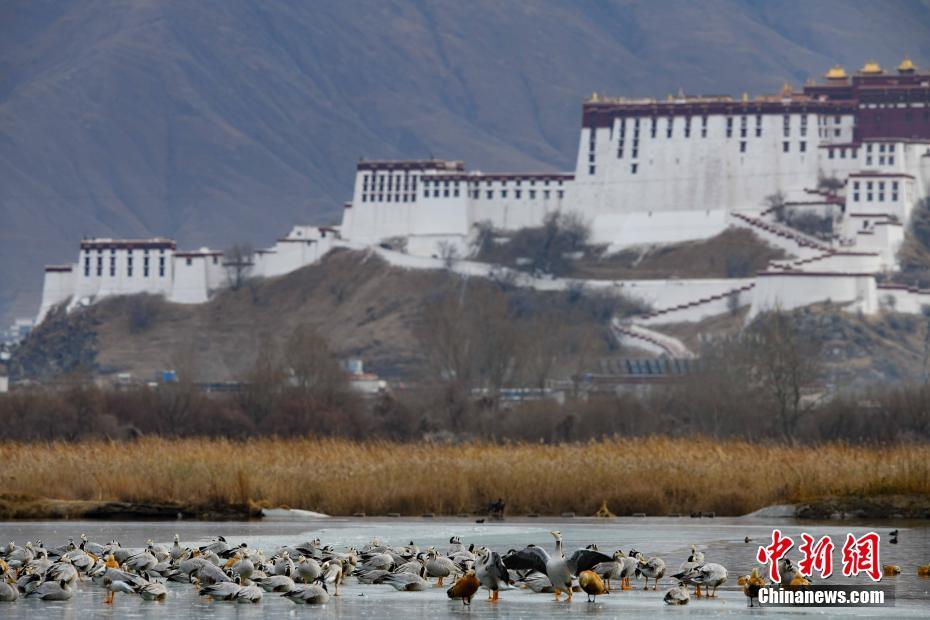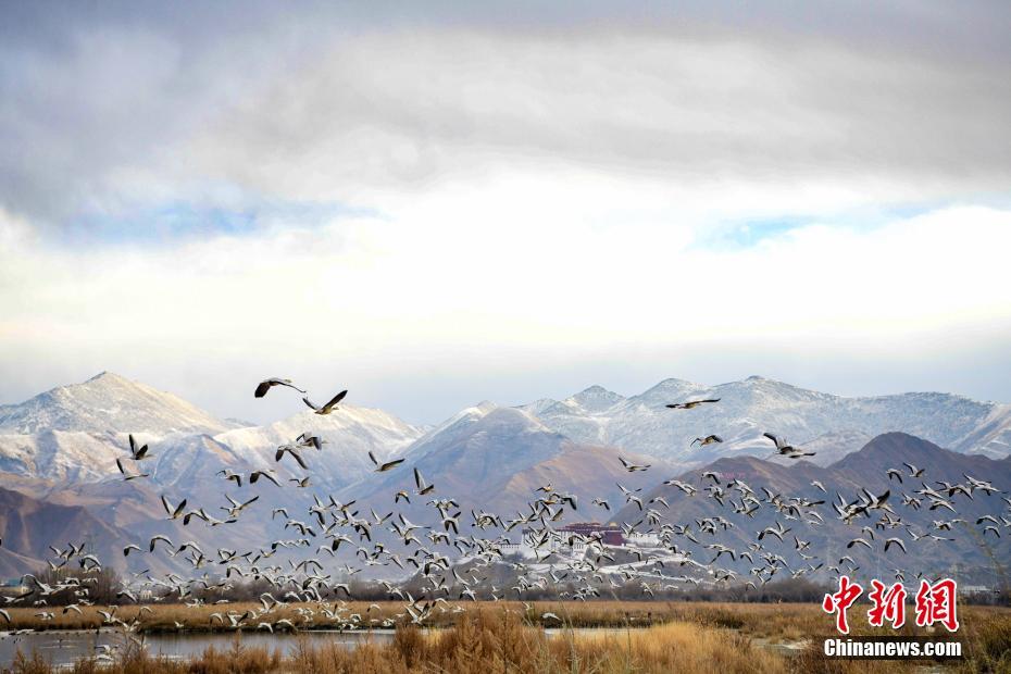 12月24日,拉魯濕地,越冬的候鳥成群結(jié)隊(duì)。嚴(yán)冬時(shí)節(jié),西藏自治區(qū)拉薩市的拉魯濕地國(guó)家級(jí)自然保護(hù)區(qū)成了候鳥越冬的樂園。 中新社記者 貢嘎來松 攝