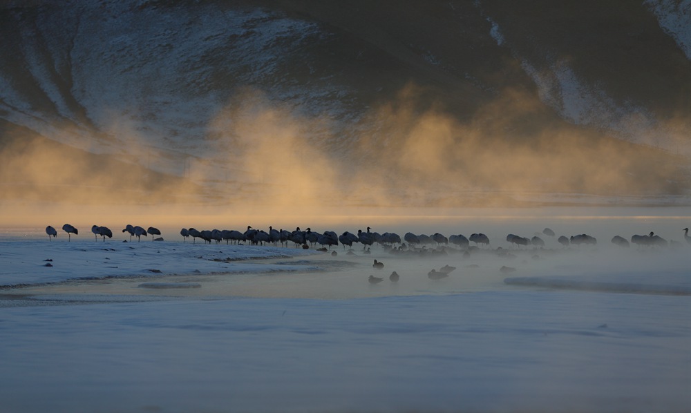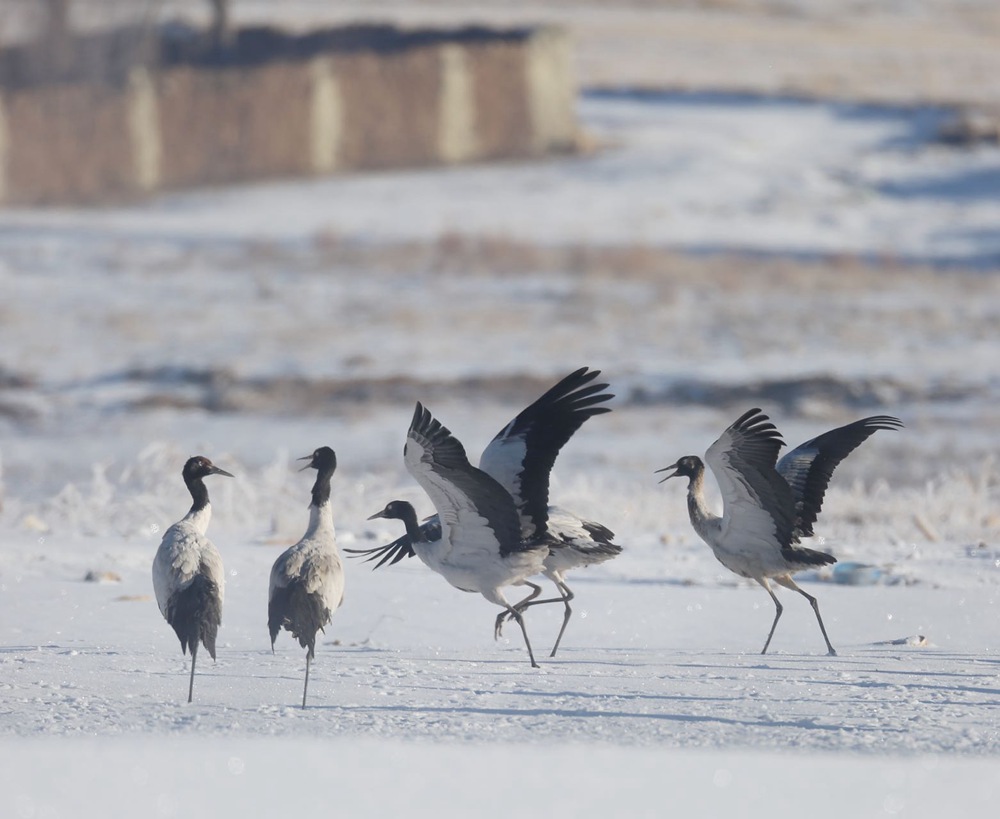 近日,西藏拉薩市林周縣迎來降雪,位于林周縣境內(nèi)的黑頸鶴保護(hù)區(qū)變成了粉妝玉砌的世界,黑頸鶴與白皚皚的大雪相互點(diǎn)綴,構(gòu)建出一幅自然和諧的冬日畫卷。